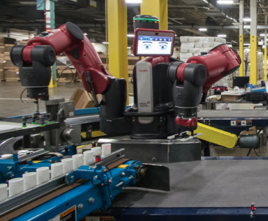 A collaborative dual arm, humanoid robot capable of safe working next to humans. Teach-and-repeat functionality through direct manipulation.
